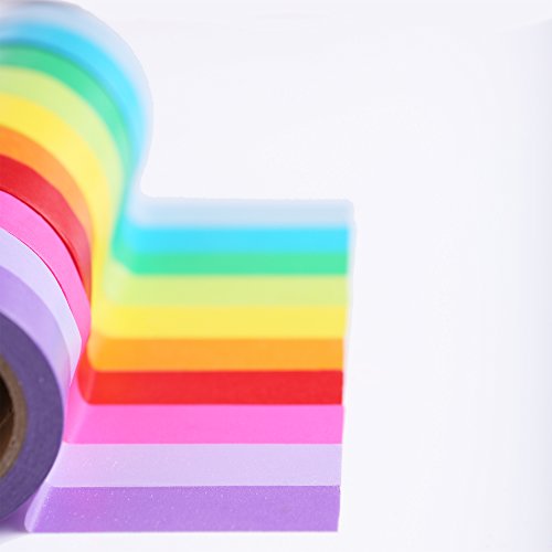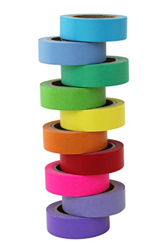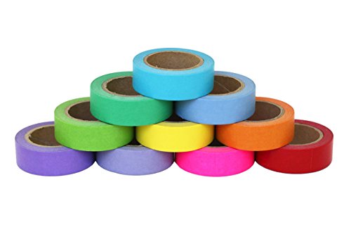 Scraft Artise (10) Rolls of Washi Rainbow Masking Tape, Japanese Decorative Set, 15mm x 10m, approx. 5/8"x 33', 10 Bright Solid Colors, Fun for Scrapbooking, Journaling, Cards, DIY, Arts & Crafts