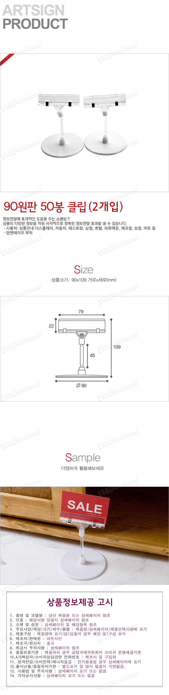 - 품명 및 모델명90원판 50봉 클립(90x109mm)