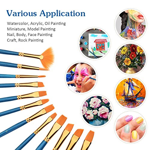 - All in One Kit—you will receive 12 colors face paint tubes, 10pieces round pointed tip nylon hair brush set(10 sizes: 5/8 8 6 4 5 3 2 2 1 2/0,) All them in one set.