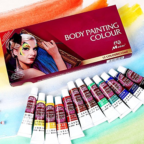 - Face Paint Kit,12 Colors Professional Face Painting Tubes, Non-Toxic & Hypoallergenic Body Paint Halloween Makeup, Rich Pigment, Come with 10Pieces Round Pointed Tip Nylon Hair Brush and Palette
