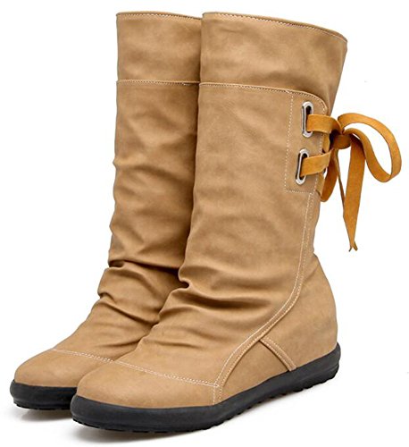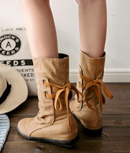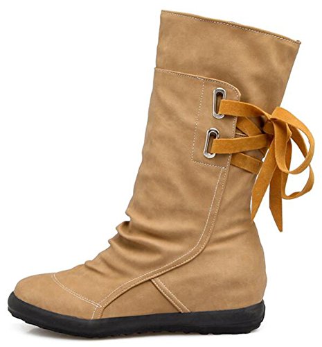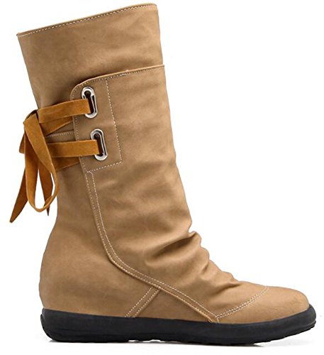 Binding : Apparel Product Description When you walk in the street or take part in some special occasions, do you want to be charming and attractive among others? Or are you tired of wearing the same booties with others? How could you miss these trendy outfits? This pair of comfy boots is made lace up on the back. You will like their antiskid, durable and waterproof design. With the low wedge heel, you could be at ease when you dress in the comfortable shoes. Many people are in favor of its casual, fashion and elegant style with the closed round toe, mid calf and solid color. In the fall and coming winter, it's a must. They can fit any formal occasions, like wedding, party and club. With one, you will be the focus of fashion. Young ladies can buy one with your close friends. They are a wonderful gift. They are also easy-matching. Choose one suitable size so that it could fit you well. Welcome to our store. IDIFU is a registered trademark in the USA. We always work on helping every fashion lady to be unique and different. As a trendsetter, YOU ARE DIFFERENT! 0