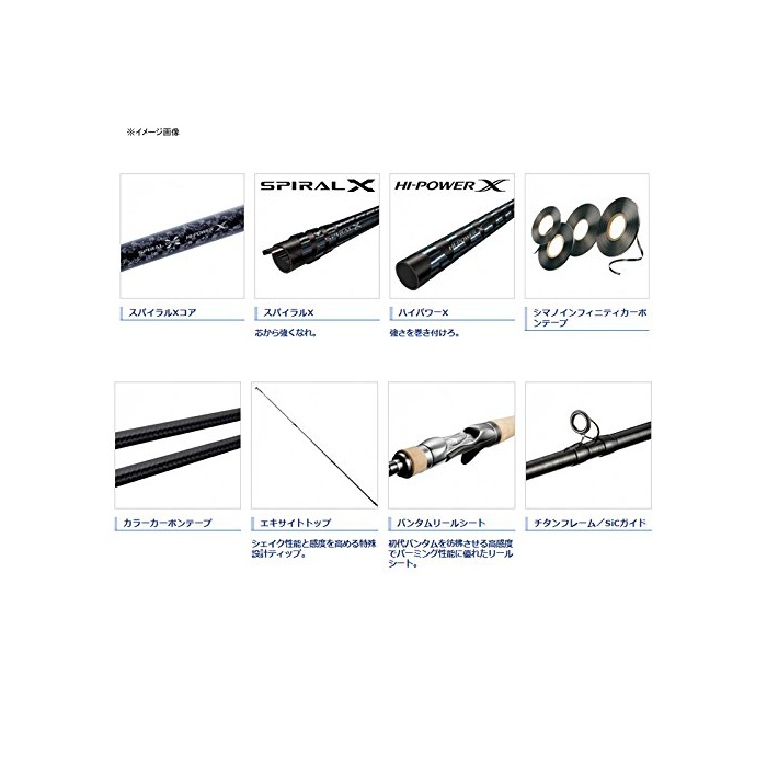 스파이럴X코어/하이 파워X/컬러 카본 테이프/중량급 루어에서도 미끄러지지 않는 EVA그립/강도&강성 중시 올 더블 풋 가이드(스테인레스 프레임SIC가이드)/올 더블 랩핑 사양/풀 홀 디《구시토》