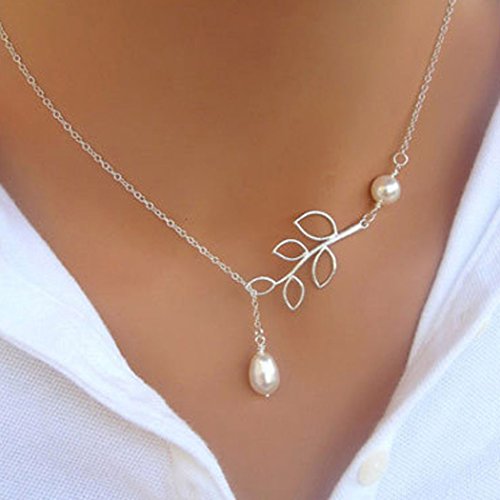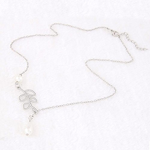 Jovono Necklace Choker with Alloy Silver Leaf Pendant For Women And girls