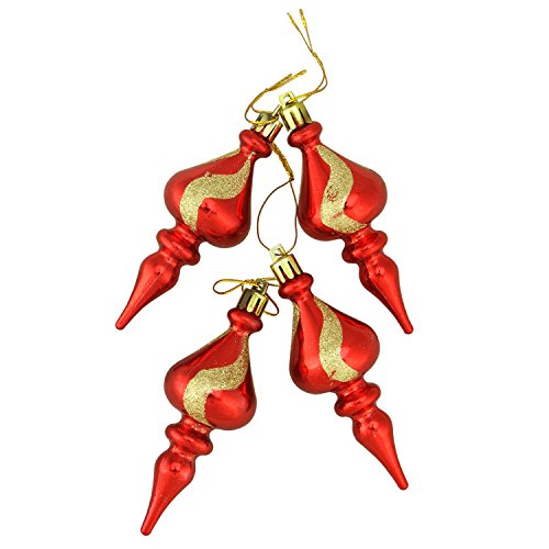 Northlight 4ct Shiny Red with Gold Glitter Shatterproof Christmas Finial Ornaments 4.5"