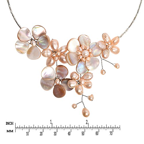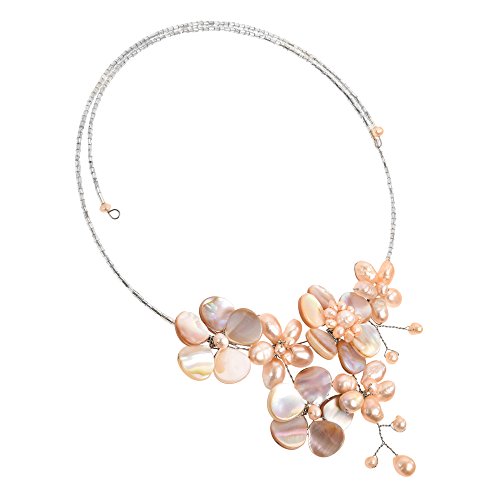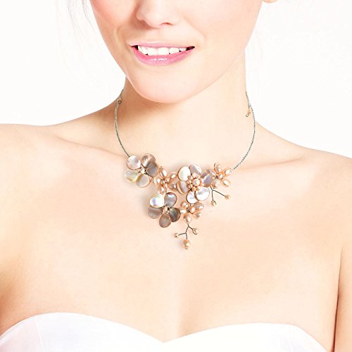 This unique cluster flower choker will embellish any simple outfit. The piece features pink mother of pearl (dyed), cultured freshwater pink pearls (dyed), fashion beads and memory wire necklace. The necklace is handmade by talented artisan Jib from Thailand. The length is fully adjustable and can be customized to your taste. PLEASE NOTE: The handcrafted nature of this product will produce minor differences in design, sizing and weight. Variations will occur from piece to piece, measurements may vary slightly.Includes an original AERAVIDA organza jewelry pouch (comes in various colors), also handmade by our Artisans. Perfect for gift giving to someone special or keep for yourself!