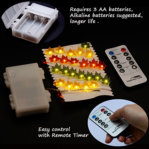 Christmas Decoration Light, Impress Life Fall Maple Leaves Garland 10ft 40 LEDs New Year Gift, Xmas Decor String Lights Battery Operated with Control for Thanksgiving Wedding Birthday Party Supplies
