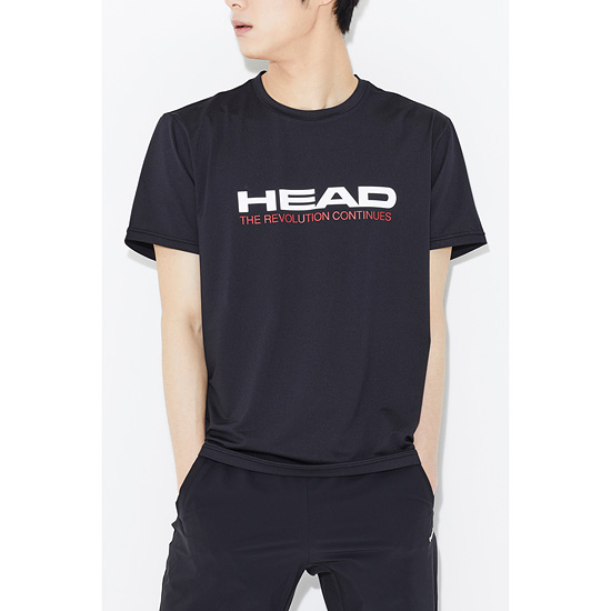 - HEAD 로고와 브랜드 아이덴티티를 담은 레터링이 포인트인 남성 반팔 티셔츠.