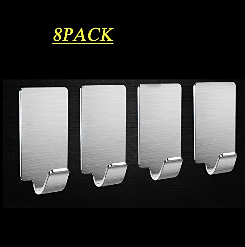 8 Pack High Powerful Adhesive Hooks, 3M hanger 304 Stainless Steel Self Adhesive Hooks Waterproof, Strong & Durable