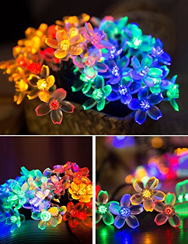 All Star 50 LED Solar-Powered Flower Bulbs Outdoor String Lights, Multi Color