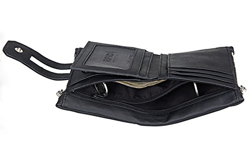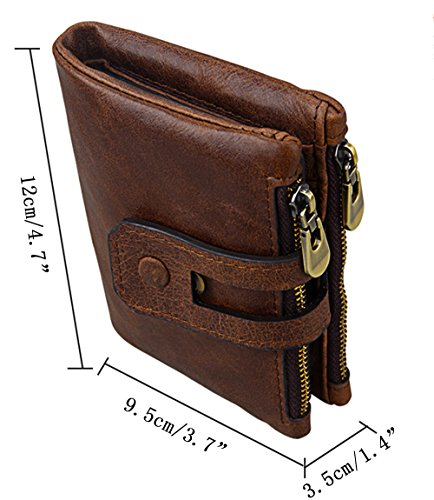 -. Feature : Material:it made of high quality cowhoide genuine leather and inner is durable polyester,oil wax surface, vintage style. / Dimension:9.5x3.5x12cm/3.7''Lx1.4''Wx4.7''H / RFID-blocking lining to protect your personal information, keeps contents secure and in place. / Large capacity: 1 spacious pocket + 1 zipper hide pouch for paper cash;14card slots + 2 zipper coin pocket and 1 ID window, more space to put in your money ,coins,photo,cards etc. Quick snap closure,more safe and convenient. / Special design: there are 2 Micro SD card holder ,you will no longer to find it anywhere.