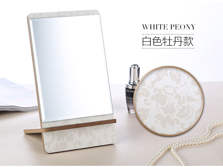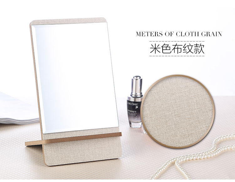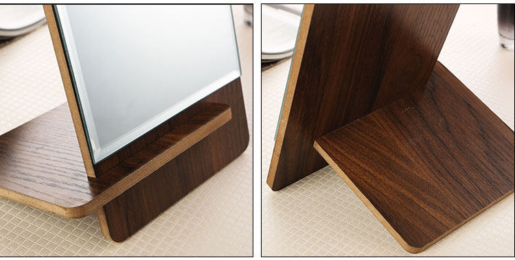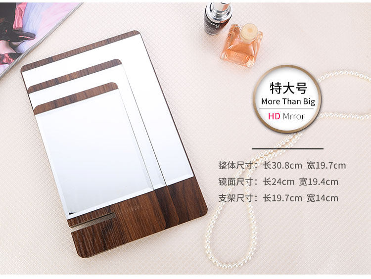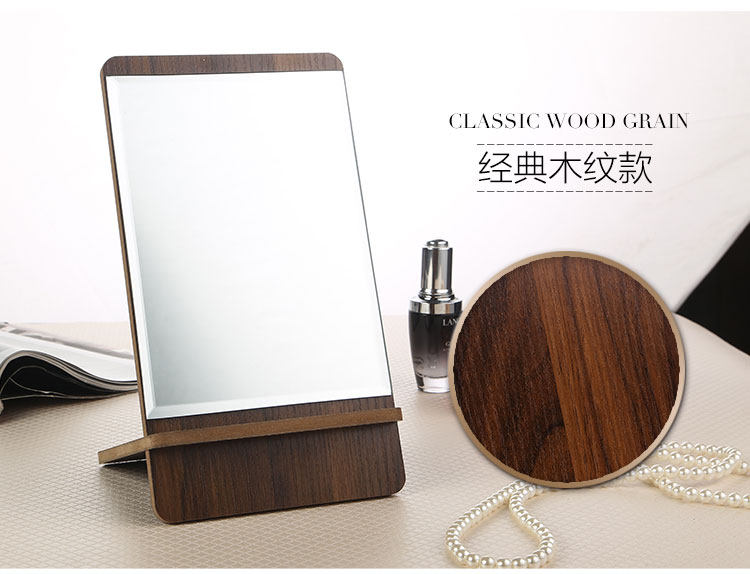 高清单面台式化妆镜 高档木质镜子 方形简易梳妆镜 便携随身镜子