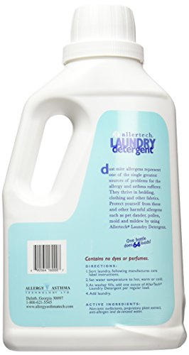Studio : National Allergy Publisher : National Allergy Binding : Kitchen Product Description AllerTech Laundry Detergent?- Now you can launder your bedding and clothing in any temperature water while removing the allergens that offend you. AllerTech Laundry Detergent is made especially for fabrics that can't stand up to frequent hot water washing. Washing with all?temperature AllerTech makes it possible to use any type of bedding because hot water washing is no longer necessary. You can even wash in cold water!?A single bottle will accommodate 64 average loads. High efficiency washers can average 128 loads. Allergy sufferers benefit most! AllerTech removes dust mites, pet dander, mold, mildew and pollen?so you can wash your bed linens and rid yourself of allergenic particles that occupy your bedding, which can make sleeping difficult and waking miserable. This detergent has no perfumes, dyes, or irritating additives. Normal detergents are not made to deal with all allergens in cold water, but AllerTech Laundry Detergent gets your clothes and bedding their cleanest in any wash temperature, while removing allergens wherever they lurk in the fabrics you love.Available in 64-oz bottle. 0