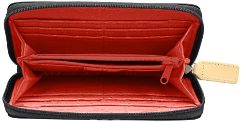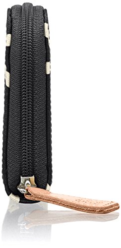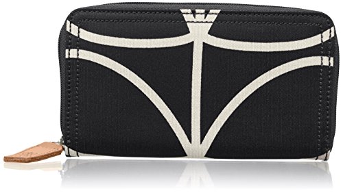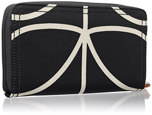 Matt laminated travel pouch in the classic 'giant linear stem' print with leather trims and contrast colored zip closure. Inside details include sand linear stem jacquard lining, small leather logo card holder pocket, small patch pocket for a passport and mobile slip pocket. Silver colored hardware. Includes a detachable long strap in double sided webbing that allows the bag to be worn as a shoulder bag or across the body (length 112cm) or detached and used as a pouch or clutch.