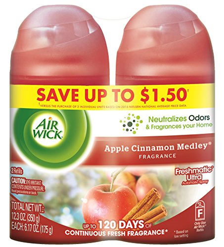 AIR WICK FRESHMATIC AUTOMATIC SPRAY REFILL AIR FRESHENER, APPLE CINNAMON MEDLEY, 2 REFILLS, 12.34OZ