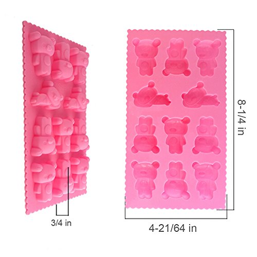 - Feature : 3 Pack cute different bear shaped molds, 1pc 12-cavities teddy bear in 2 poses, 1pc plum blossom and bear head, 1pc bear paw pan. They are funny toys for kids and adults / You can use it as an ice cube tray in the freezer, a bear jello mold in the fridge. These silicone molds are fantastic for making Candy, Chocolates, Ice cube, candles, hard candy, soap, Jello and gummy / Flexible and non-stick. Chocolates, Candies and Gummies Pop Out Easily. Reusable For Up to 3,000 Uses / High quality construction; long lasting performance; meets European and FDA standards for silicone bakeware. Temperature safe from -40° to 446°F / Size:8.26" x 4.33" x 0.75" inches. Ramdon color