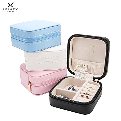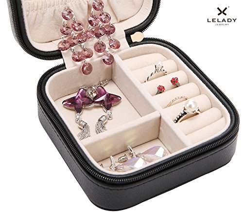 LELADY Small Jewelry Box Portable Travel Jewelry Case Organizer Faux Leather Storage Holder for Earrings Rings Necklaces, Gifts for Women Girls Mini Size (Black)