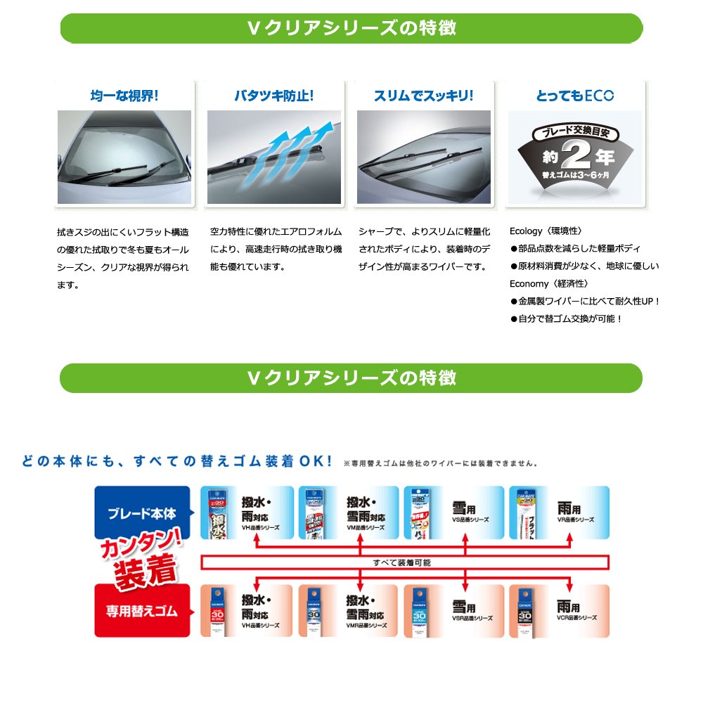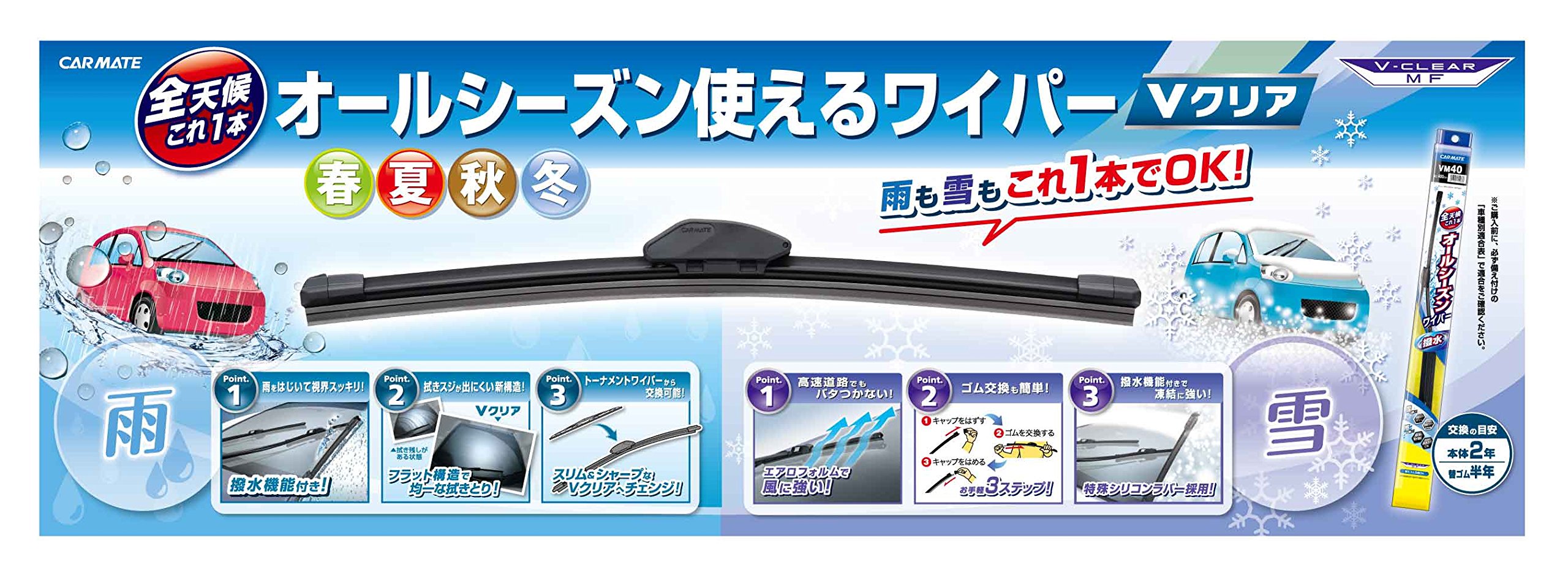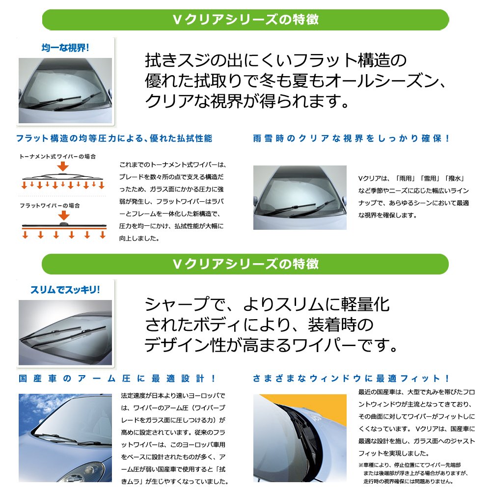 ● Can be used for all seasons with special silicone rubber adoption ● Immediate water repellent effect with even pressure on the glass surface ● Protects visibility from rain, snow and mud with uniform wiping ● Suppresses lifting and fluttering at high speed ●
