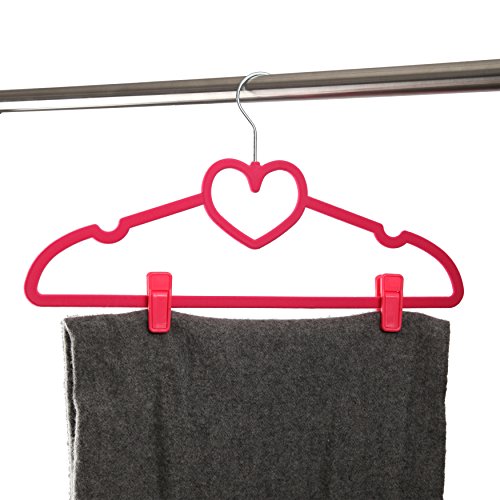 -. Title : Finnhomy LOVE Heavy Duty 30 Pack Clothes Hangers with 10 Sturdy Multiple Use Finger Clips, Durable Slim-Line Velvet Hangers,Heart Shaped, Pink