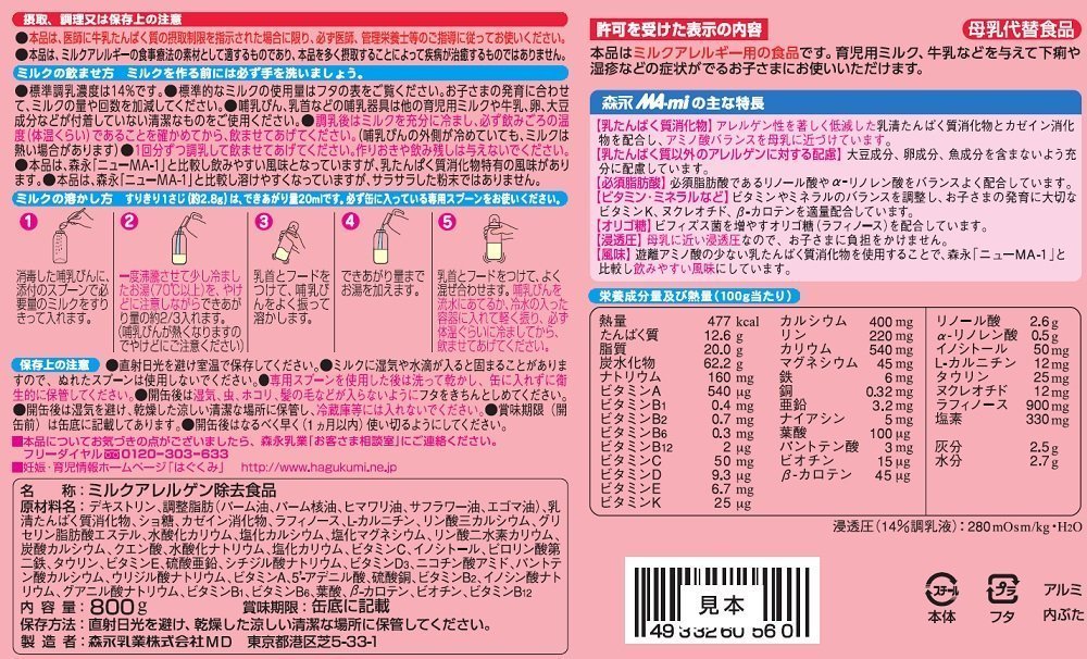 ● Milk allergy milk powders for balancedly combining nutrients necessary for the growth of children, such as lipids, carbohydrates, minerals, vitamins, etc, into high-quality milk protein digests whose allergenicity has been reduced by highly enzymatic digestion and membrane filtration