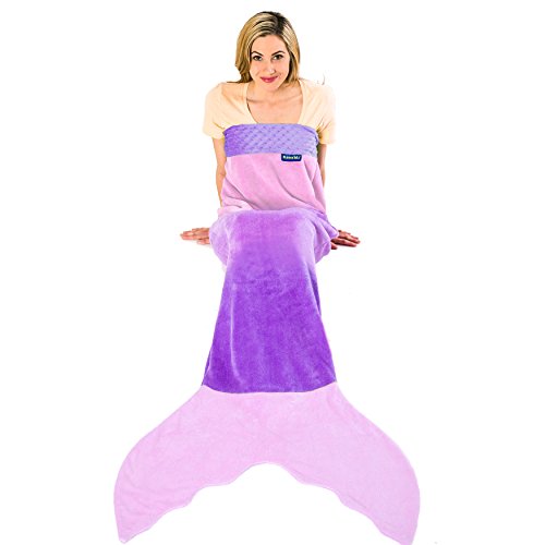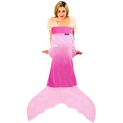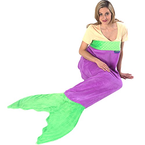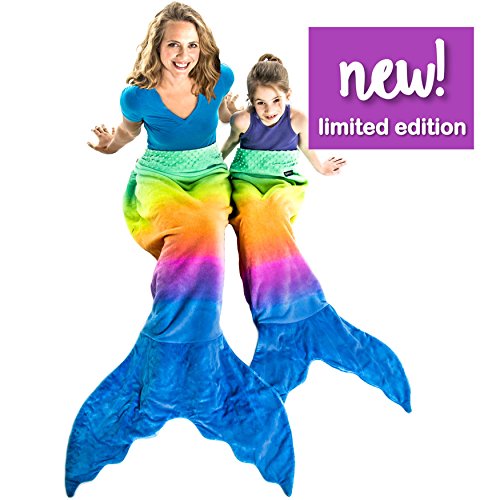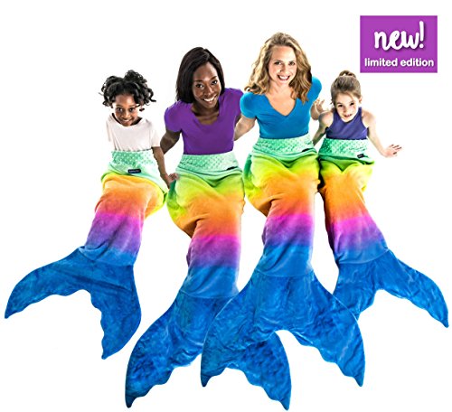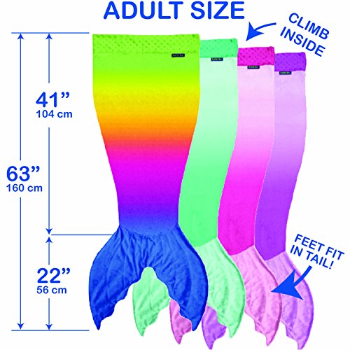 Blankie Tails® Mermaid Tail Blankets will make you feel like Ariel from The Little Mermaid while snuggled up in a Blankie Tails® Mermaid Blanket. Climb inside the colorful-coziness of our NEW Limited Edition Rainbow Ombre Blankie Tails®! Feel like Ariel from the little mermaid in our Rainbow-Ombre Blankie Tails® made from premium grade, super soft, double sided minky fleece with minky dot embellishments around the top, and a gorgeously sewn tail cascading with color, which you can slide your feet into. Blankie Tails® Teen /Adult Size mermaid blankets fit most mermaids, but are ideal for those 4'11 and taller, for more petit mermaids, check out our kids size. Blankie Tails® are perfect for movie nights, sleepovers, bachelorettes, girls nights, camping, road trips and just hanging out with friends and family. As the creator of The Original Mermaid BlanketTM, Blankie Tails® prides it's self of using only the best materials and quality construction, Blankie Tails are super durable and machine washable. Make sure to check out our kids size Blankie Tails® Mermaid Tail Blankets and Blankie Tails® Shark Blankets. Makes a great gift!Feature