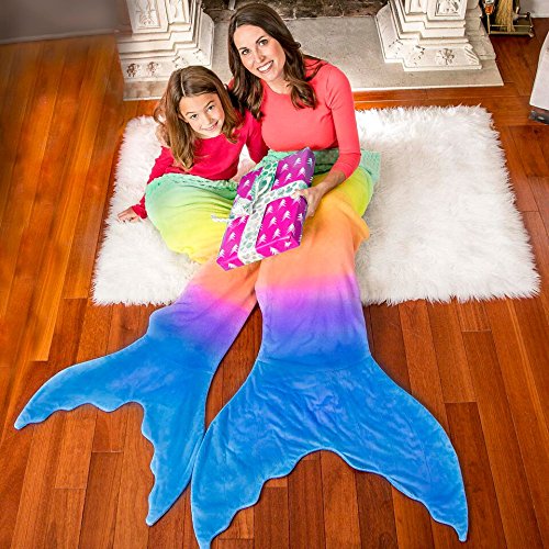 WHEN LIFE GETS TOUGH, BE A MERMAID! Escape from your day and relax in this gorgeous mermaid blanket from Blankie Tails. The one-of-a-kind, cascading rainbow ombre sets this mermaid blanket apart from the rest.