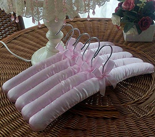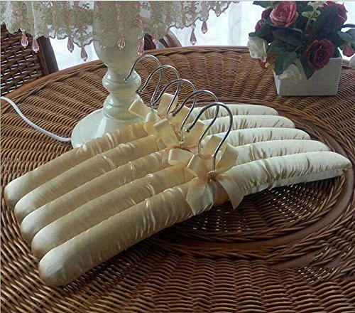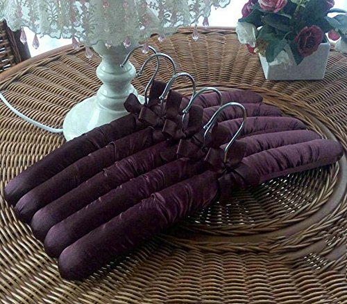 -. Feature : Satin covering holds even the most delicate fabrics without damaging them / Include 5 satin hangers / Material: Satin cover, inner wood with padding and rubber-covered wire hook / Luxury, padded satin hangers with wire hooks