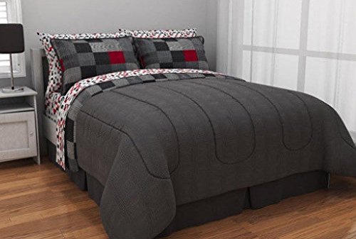 Studio : Latitude Publisher : Latitude Product Description Latitude Teen America Bordered Geometric Red, Black Blocks Reversible Solid Gray Bedding Twin XL Comfort Set for Boys (5 Piece in a Bag)