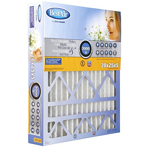 BestAir CB2025-13R Furnace Filter, 20" x 25" x 5", Carrier/ Bryant Replacement, MERV 13