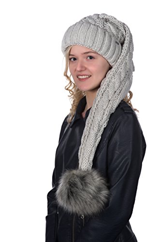 -. Title : Beanie A 106 Mütze, Zipfelmütze, Pudelmütze, Wintermütze mit großer Fellbommel aus Fellimitat. Extra Lang mit weichem Fleece abgefüttert