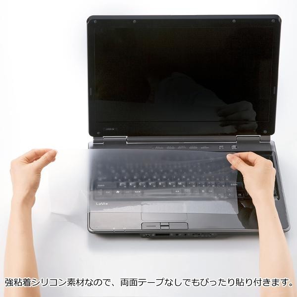 | お好みのサイズにカットできるシリコン製マルチタイプのノートパソコン用キーボードカバー。0.15mmの超薄素材で、キーボードの文字がくっきり見えます。 |