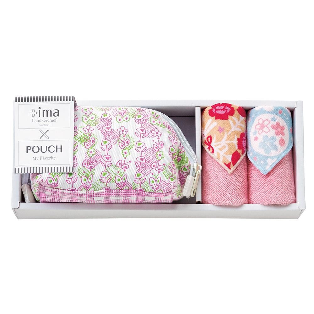 | お出かけに便利なポーチと今治ハンカチのセット。 |