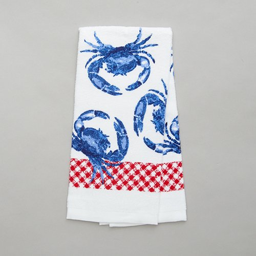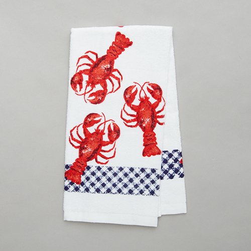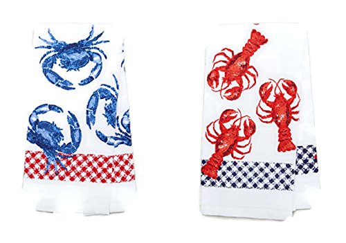 Beach House Shore Themed Lobsters and Crabs Red White and Blue Dishtowel Set of 2 Cotton Tea Towels