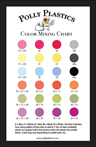 Polly Plastics Color Pellets for Moldable Plastic. Blue, Red, Yellow, Black, White. Color Chart Included.