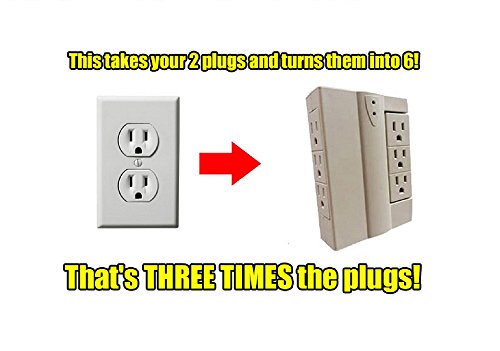 - MANAGES and ORGANIZES: This Outlet Swivel Socket features 6 surge protected outlets conveniently designed to sit behind furniture and appliances. It provides 6 outlets swivel 90° side to side manages and organizes cords. This swivel wall socket is ideal for indoor use, tidying up cords in your home and office. Coverts 2 outlets into 6, giving you room for all the devices you need.