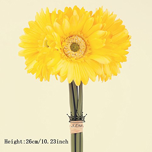 - *BEAUTIFUL & ELEGANT: S. Ena Artificial Silk Fake Gerbera Daisy Flowers with 1 stems and 1 flower head, flower diameter 3.7'', Each Bunch dimension approx.: 10.23" H x 3.7"W.