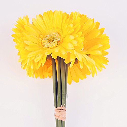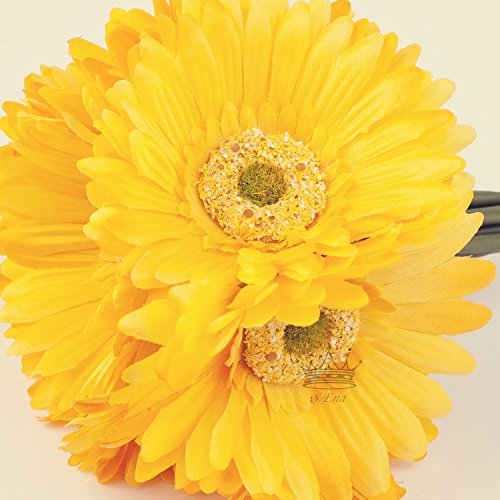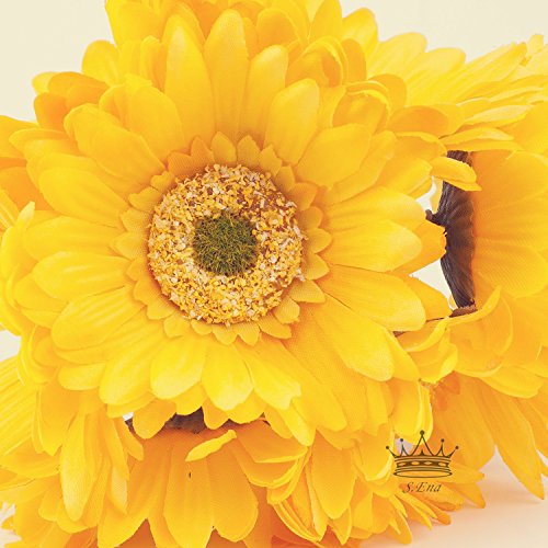 S.Ena, 1 Branch 1 Head Artificial Silk Fake Flowers Gerbera Daisy Wedding Floral Home Decor Bouquet Birthday Party DIY, Pack of 7 (Yellow)