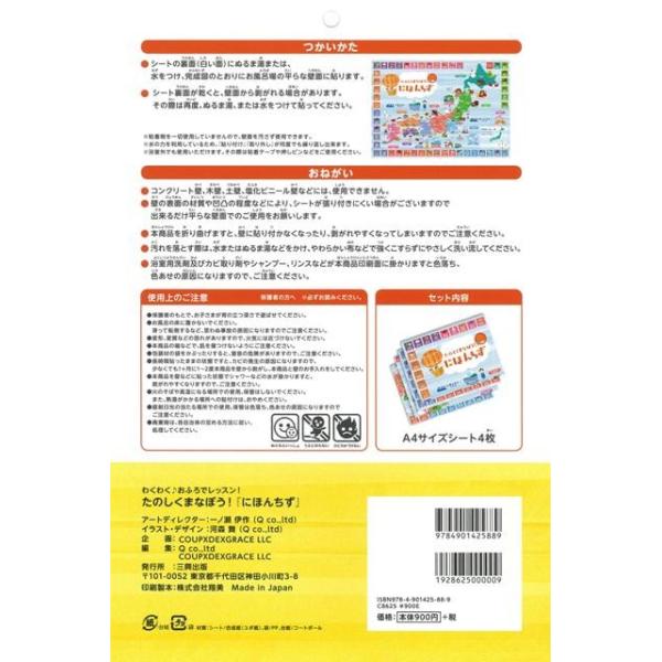 【商品基本情報】 商品名称:たのしくまなぼう!にほんちず 著者/出版社:わくわく♪おふろでレッスン!/わくわく♪おふろでレッスン! 初版発行日: サイズ:A4変判 ページ数:4 ISBN/JAN:9784901425889/4528189432345