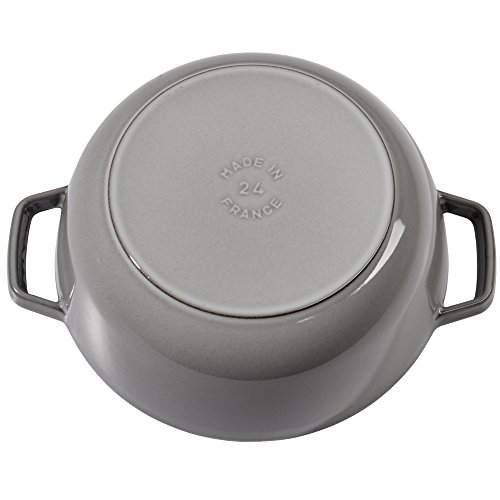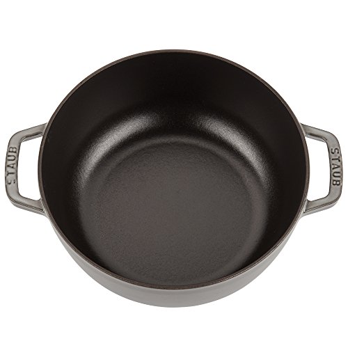 Staub enameled cast iron cookware is the top choice for chefs and home cooks alike. Rooted in French culinary heritage, Staub's renowned cocottes are timeless pieces, perfect for casual meals or sumptuous suppers. The Essential French Oven with Chistera lid is the latest star in the cast iron collection. Like Staub's signature flat lid, the domed Chistera lid has excellent self-basting properties. Usually, a convex lid causes condensation to fall to the sides. The innovative, Chistera drop-structure lid solves this problem by putting a twist on traditional spikes. Moisture cascades from the whole lid. This continuous basting guarantees delectable roast chicken and braised short ribs. What inspired this original design? Basque pelota players use wicker basket chisteras to scoop up balls and hurl them quickly. Under Staub's new lids, the chistera-shaped curves gather condensation to shower moisture upon the delicious dish that simmers inside.Feature