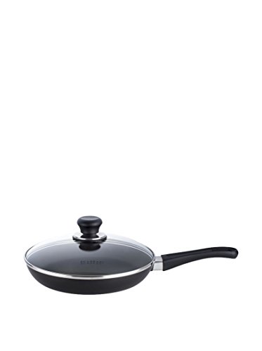 Cook up a delicious omelet, sear chicken, and more with this Classic fry pan from Scanpan. Made of heavy-duty, pressure-cast aluminum, this pan ensures quick, even heating with no hot spots. With ceramic-titanium nonstick technology, food is never left behind in the interior of the pan. The patented spring-lock handle stays cool during stovetop use. It includes a glass lid for easy monitoring of food. Oven safe to 500 degrees Fahrenheit and backed by a manufacturer's lifetime warranty, this fry pan also dishwasher safe for easy cleanup.9" diameter