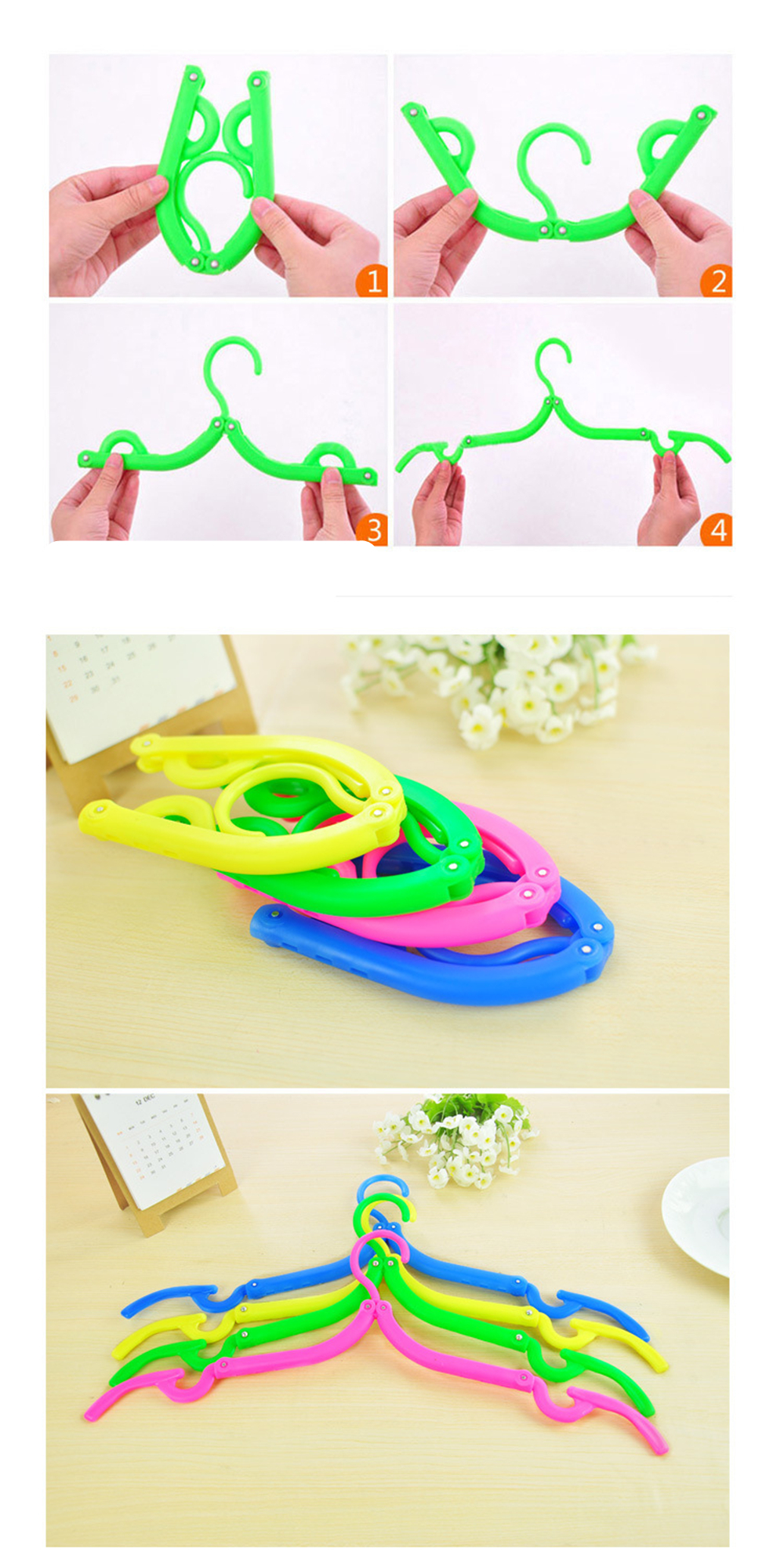 COMPACT FOR EASY STORAGE--- These hangers can be folded thus it can fit in small pockets of travel bags and luggage.