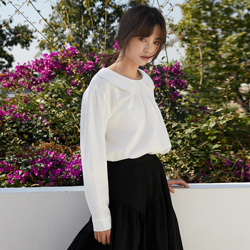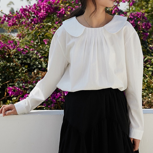 フロントタックと丸襟でガーリーな雰囲気をまとうブラウスです◎
