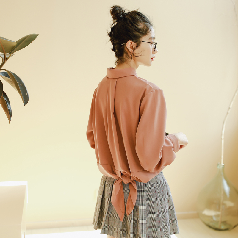 ラフな印象ながらもかわいらしさも感じられるバックリボンのデザインが印象的なシャツ。