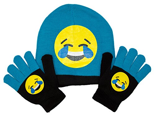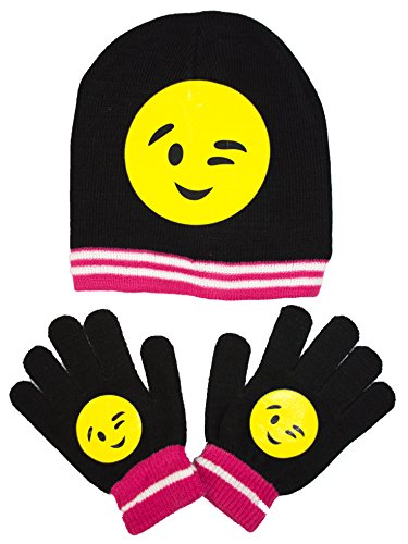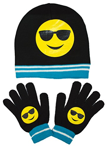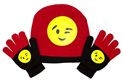 Child's Hat and Glove Set Emoji Faces, Kids Winter Glove and Knit Beanie Gift Set