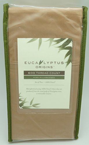 Set of Two Euca Lyptus Origins King Size Pillowcases in a Saddle Color 600 Thread Count