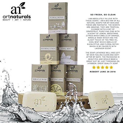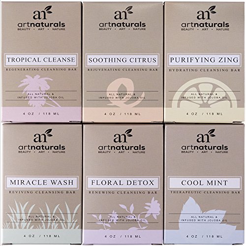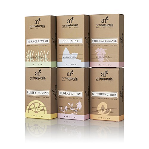 What's better than one luscious-lathering, aromatherapy soap bar? Why, six, of course art naturals' 6-piece soap bar set packages up six of the yummiest ways to wash your away your worries you've ever seen. This box of botanical oil-imbued jojoba oil bath bars takes custom cleansing to the next level with six varieties of soul-soothing essences. Pick the bar that suits your day and mood. Miracle wash sets off a revival of both body and mind with its anti-inflammatory tea tree oil. Mood-boosting cool mint wakes you up gently but powerfully with its invigorating eucalyptus extract-the perfect start to a busy day. Grapefruit extract-infused tropical cleanse exfoliates dead skin cells, revealing healthy, younger skin beneath and stimulating healthy cell renewal. Purifying zing with lemon essence produces a zesty, zippy, pore-purifying post-shower feel. Floral detox will calm your mind and relax your body, setting the stage for more restful, restorative slumber. Soothing citrus leaves your skin feeling blissfully beautiful with its bacteria-blasting orange essence. Centuries of use, and now therapeutic studies, have shown that essential oils can help you relax or sleep, or improve your skin or digestion-their benefits go well beyond a pleasant smell. They can have a healing effect mentally, physically, and emotionally. So whether you want to wake up to happy or deep clean before bed, art naturals' 6-piece soap bar set will transform shower or bath time into your own, personal skin-smoothing, soul-soothing spa experience oh-and we bet you know someone who'd love to have that experience, too. The soap bar set makes a super-sensory gift.Feature