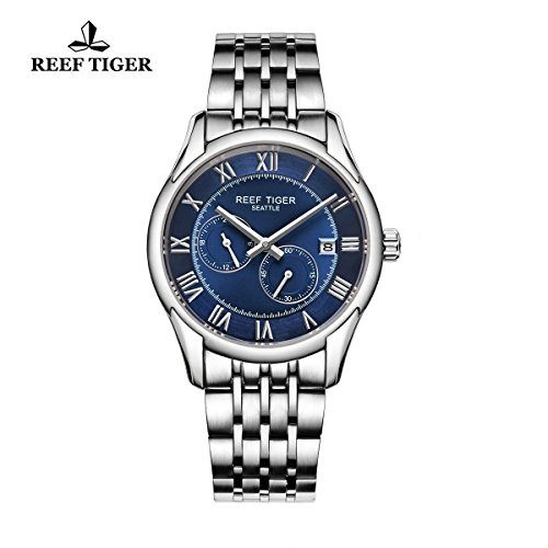 -. Title : Reef Tiger Business Watches Date Four Hands Stainless Steel Blue Dial Watch RGA165