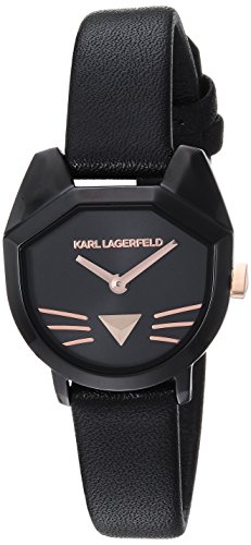Karl Lagerfeld Women's Camille Quartz Stainless Steel and Leather Casual Watch, Color Black (Model: KL2621)
