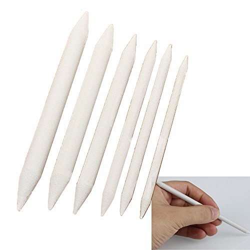 Kangkang@ 6 Pcs/Set Double Ended Durable Art Drawing Pen Tools Stump Sketch Blending Paper Stump Smudge Tortillion Stick Tool White