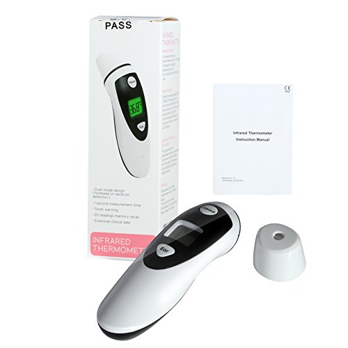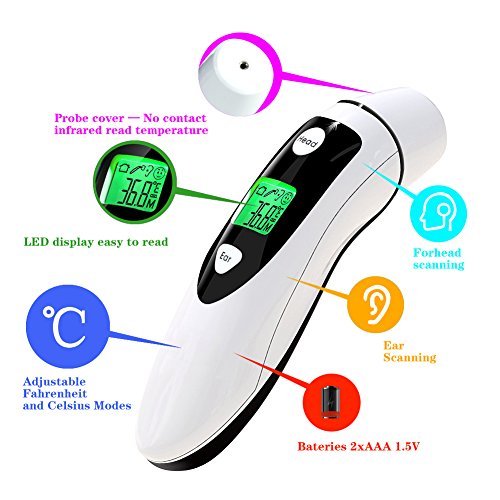 DUAL MODE: Free to switch the detection mode via digital thermometer, Forehead Thermometer (suitable for all ages) and Ear Thermometer (only for the baby), the easiest and most practical way to take a temperature.