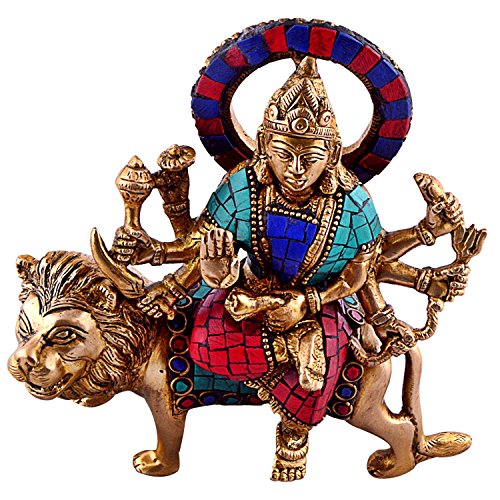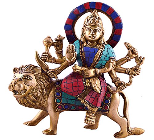 Durga Sitting on Tiger- Rare Hindu Goddess Maa Kali Vaishno Devi Brass Statue